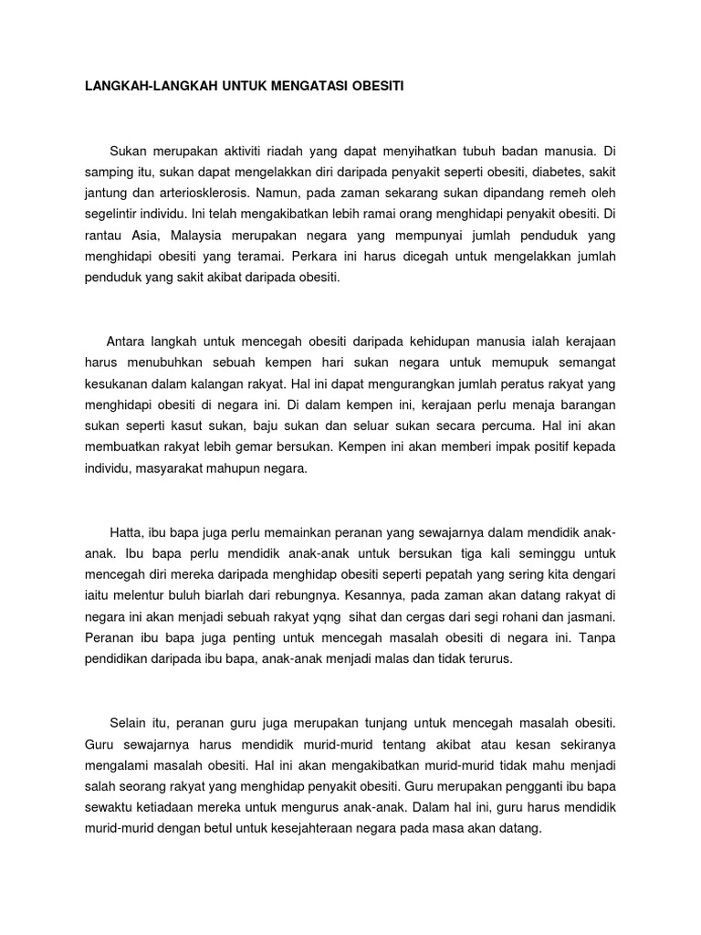 Contoh Karangan Spm Langkah Mengatasi Obesiti
